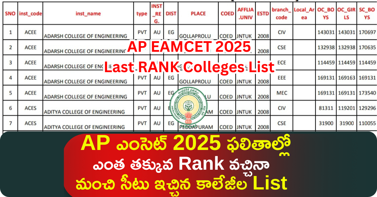 AP EAMCET 2025 Last Rank Colleges List: తక్కువ ర్యాంకు వచ్చిన వారికి సీటు ఇచ్చిన కాలేజీల లిస్టు ఇదే