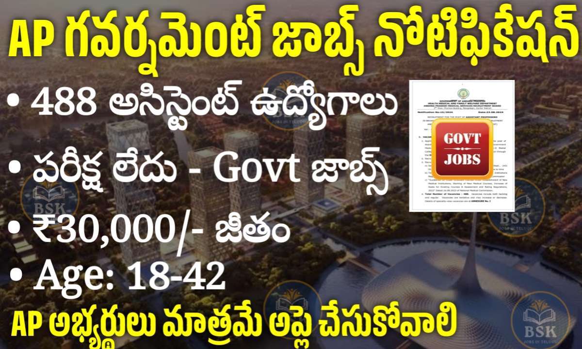 ఆంధ్రప్రదేశ్ లో 488 ప్రభుత్వ ఉద్యోగాలకు నోటిఫికేషన్ | AP DME Notification 2024 | Freejobsintelugu