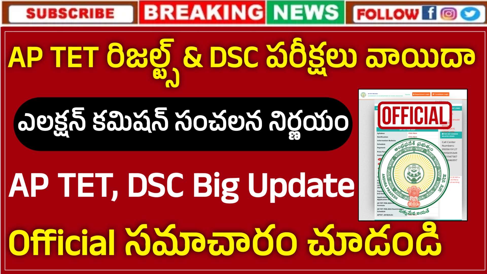 AP TET ఫలితాలు, DSC పరీక్షలపై ముఖ్యమైన అప్డేట్ | AP TET Results 2024 | AP DSC Exams 2024 | AP TET, DSC Latest News Today
