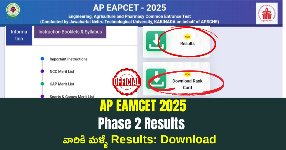 Good News: AP EAMCET 2025 Phase 2 Results: Download Rank Card @cets.apsche.ap.gov.in