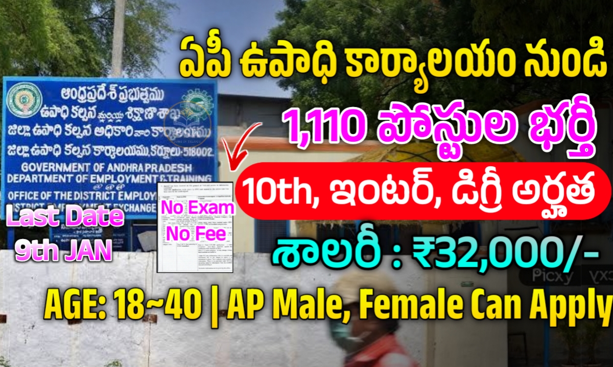 ఏపీ ఉపాధి హామీ కల్పనా కార్యాలయం నుండి 1,110 పోస్టుల రిక్రూట్మెంట్ | AP Employment Office Recruitment 2024 | Freejobsintelugu