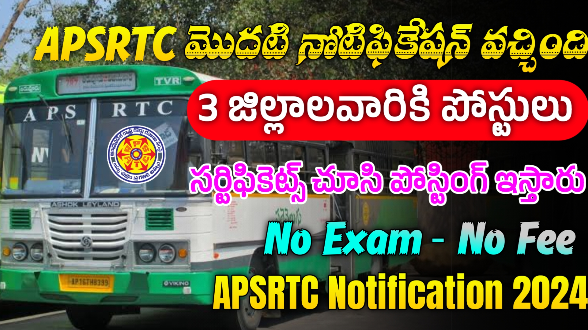 APSRTC లో పరీక్ష, ఫీజు లేకుండా డైరెక్ట్ పోస్టింగ్ | Latest Jobs 2024 | APSRTC Notification 2024