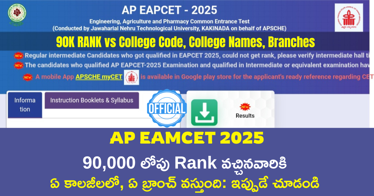 AP EAMCET 2025: 90 వేల లోపు ర్యాంకు వచ్చిన వారికి ఏ బ్రాంచ్ వస్తుంది?. ఏ కాలేజీలో సీటు వస్తుంది? – వెంటనే తెలుసుకోండి