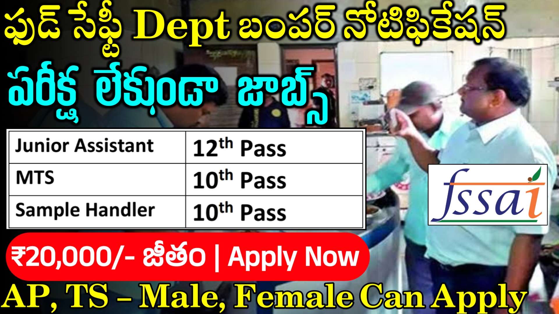ఫుడ్ సేఫ్టీ డిపార్ట్మెంట్ లో ఇంటర్ అర్హతతో జాబ్స్ | FSSAI Notification 2024 | Freejobsintelugu