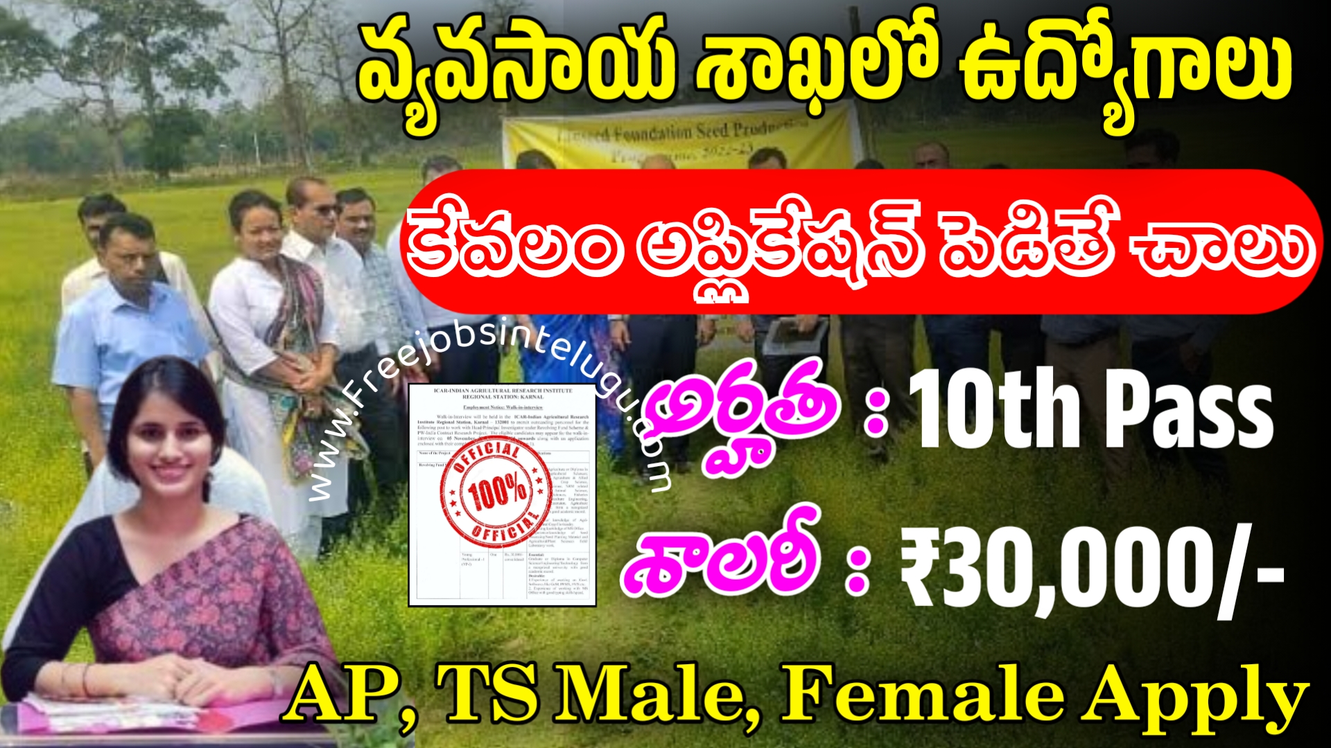 వ్యవసాయ శాఖలో 10th అర్హతతో పరీక్ష లేకుండా జాబ్స్ | ICAR Agriculture Dept Notification 2024 | Freejobsintelugu
