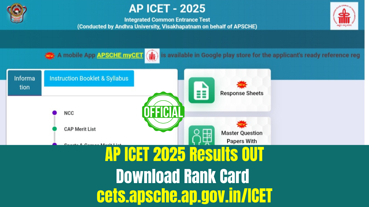 AP ICET Results 2025 OUT : Download Rank Card @cets.apsche.ap.gov.in/ICET