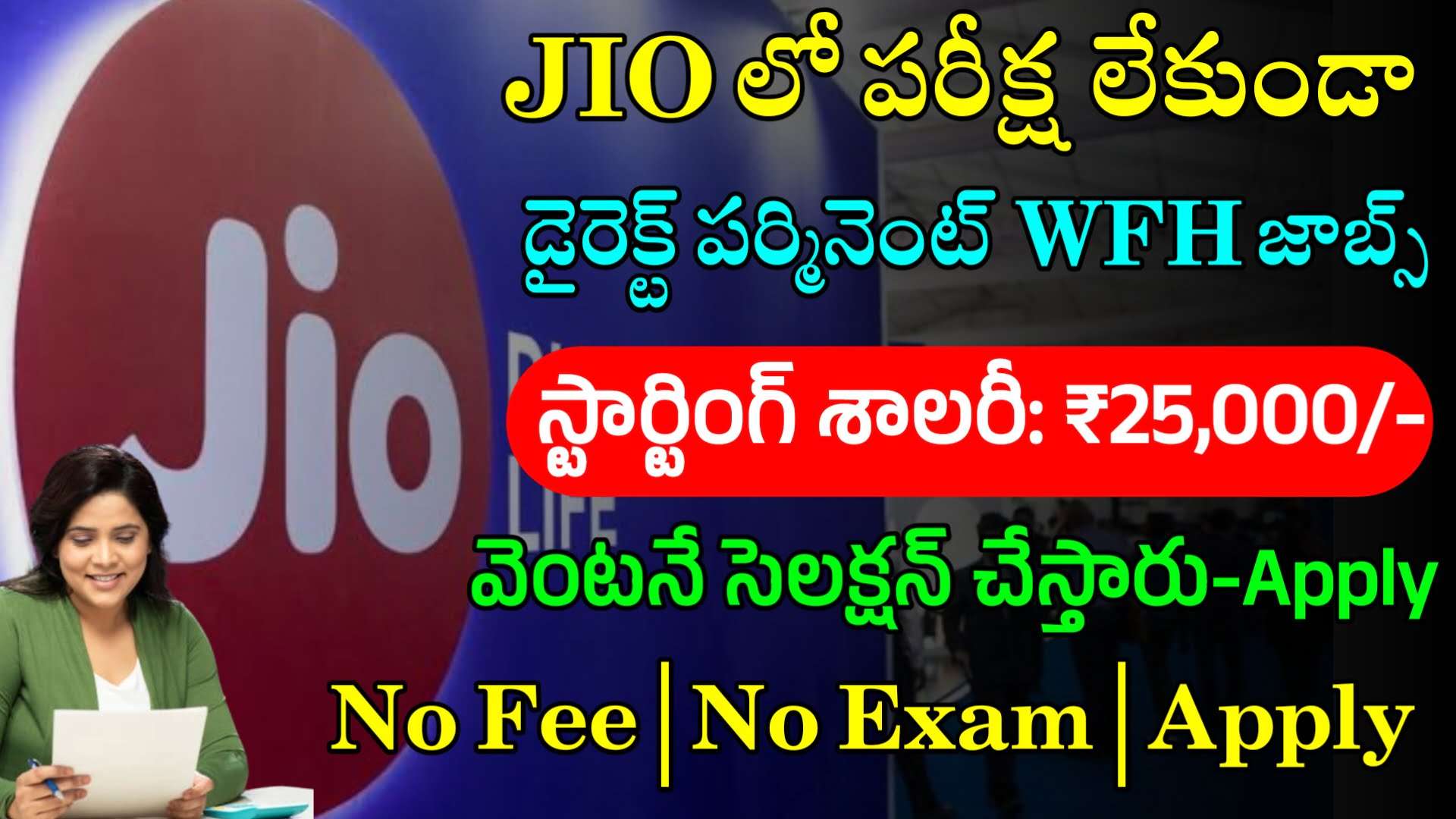 JIO లో పరీక్ష లేకుండా WFH జాబ్స్ | JIO Work From Home Jobs 2024 | Jobs For Freshers 2024 | JIO Jobs 2024