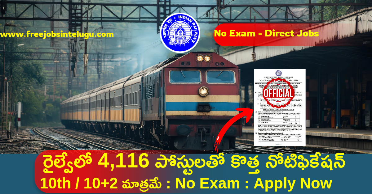 రైల్వేలో కొత్తగా 4,116 పోస్టులకు పరీక్ష లేకుండా ఉద్యోగాలు భర్తీ: RRC 4,116 Jobs Notification 2025