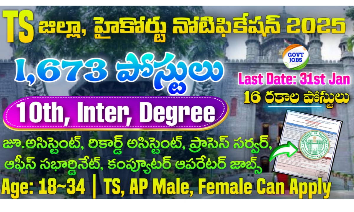 తెలంగాణ జిల్లా కోర్టు, హైకోర్టు నుండి 1673 పోస్టులతో భారీ నోటిఫికేషన్ విడుదల | Telangana High Court Jobs Notification 2025 | Freejobsintelugu