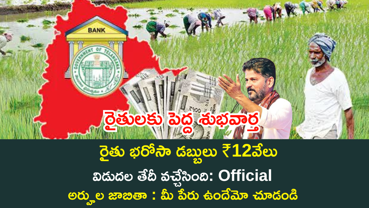 తెలంగాణ రైతు భరోసా పథకం ₹12,000/- విడుదల తేదీ వచ్చేసింది: వెంటనే మీ పేరు ఉందేమో చెక్ చేసుకోండి