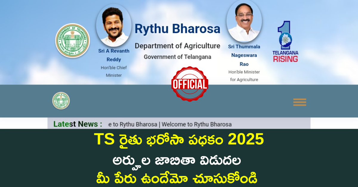 తెలంగాణ రైతు భరోసా పథకం 2025:అర్హుల జాబితా, అర్హతలు, కొత్తగా అప్లై చేసే విధానం