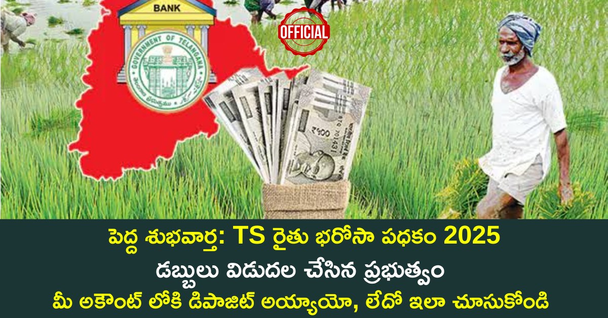 తెలంగాణ రైతు భరోసా 2025 డబ్బులు విడుదల చేశారు: మీకు డిపాజిట్ అయ్యాయో లేదో ఇలా చెక్ చేసుకోండి.