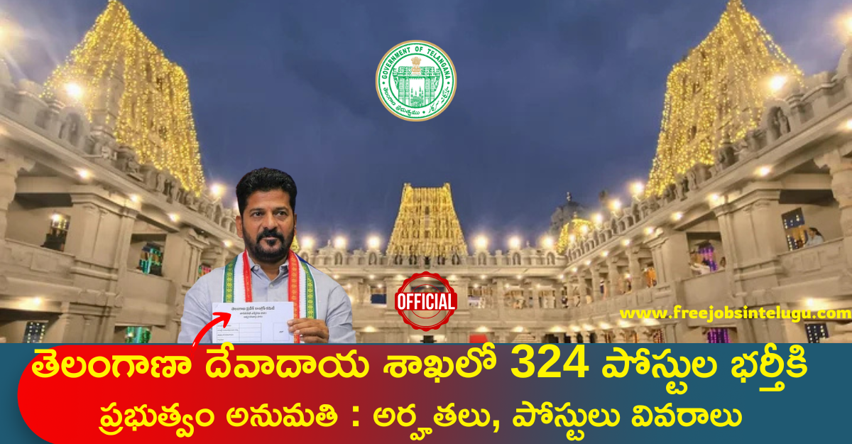 తెలంగాణ దేవాదాయ శాఖలో 324 పోస్టుల భర్తీకి ప్రభుత్వం అనుమతి : పూర్తి వివరాలు చూడండి: TG Endowment Dept. Notification 2025