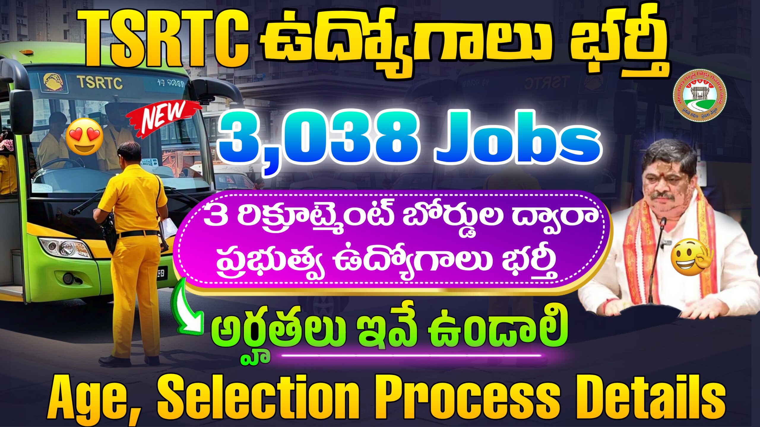 TGSRTC లో 3,038 ఖాళీల భర్తీకి ఏర్పాట్లు | TGSRTC Recruitment 2025 | Freejobsintelugu | Latest News, Jobs, Results