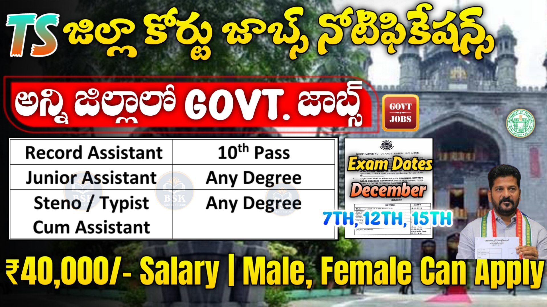 తెలంగాణా జిల్లా కోర్టుల్లో Govt జాబ్స్ నోటిఫికేషన్స్ విడుదల | Telangana District Court Jobs Notification 2024 | Freejobsintelugu