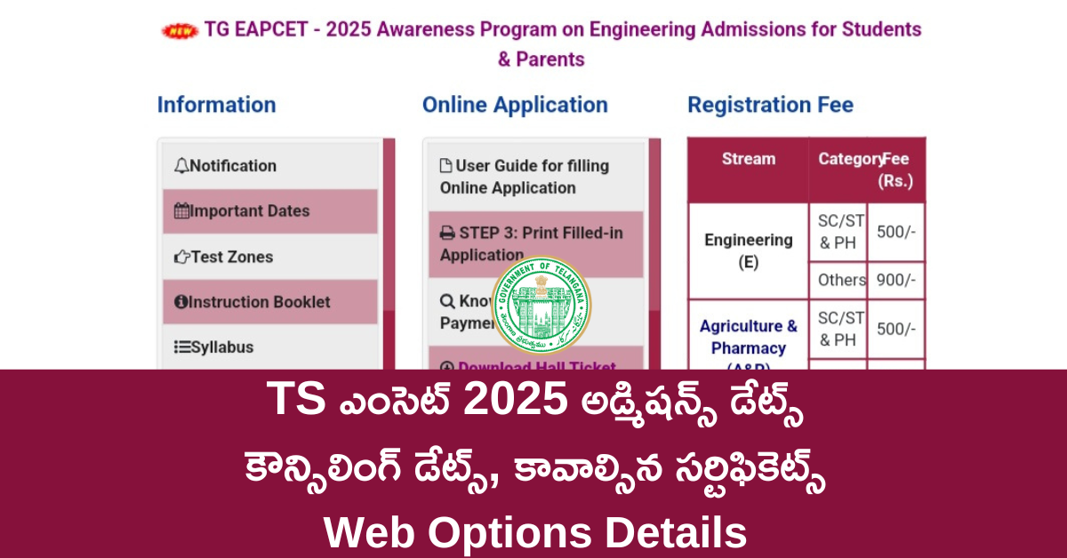 TS EAMCET 2025 Counselling Admissions Date, Certificates Verification Details
