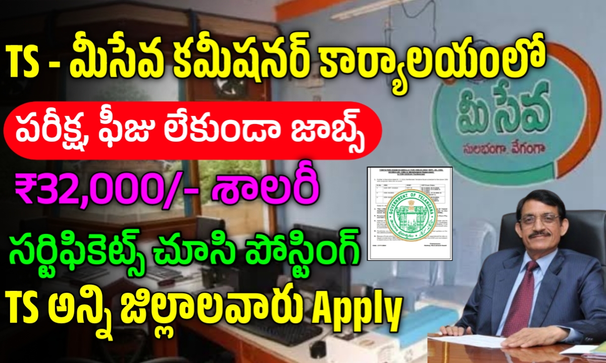 తెలంగాణా మీసేవ కమీషనర్ ఆఫీస్ లో ఉద్యోగాలు | Telangana Meeseva Commissioner Office Jobs 2024 | Freejobsintelugu