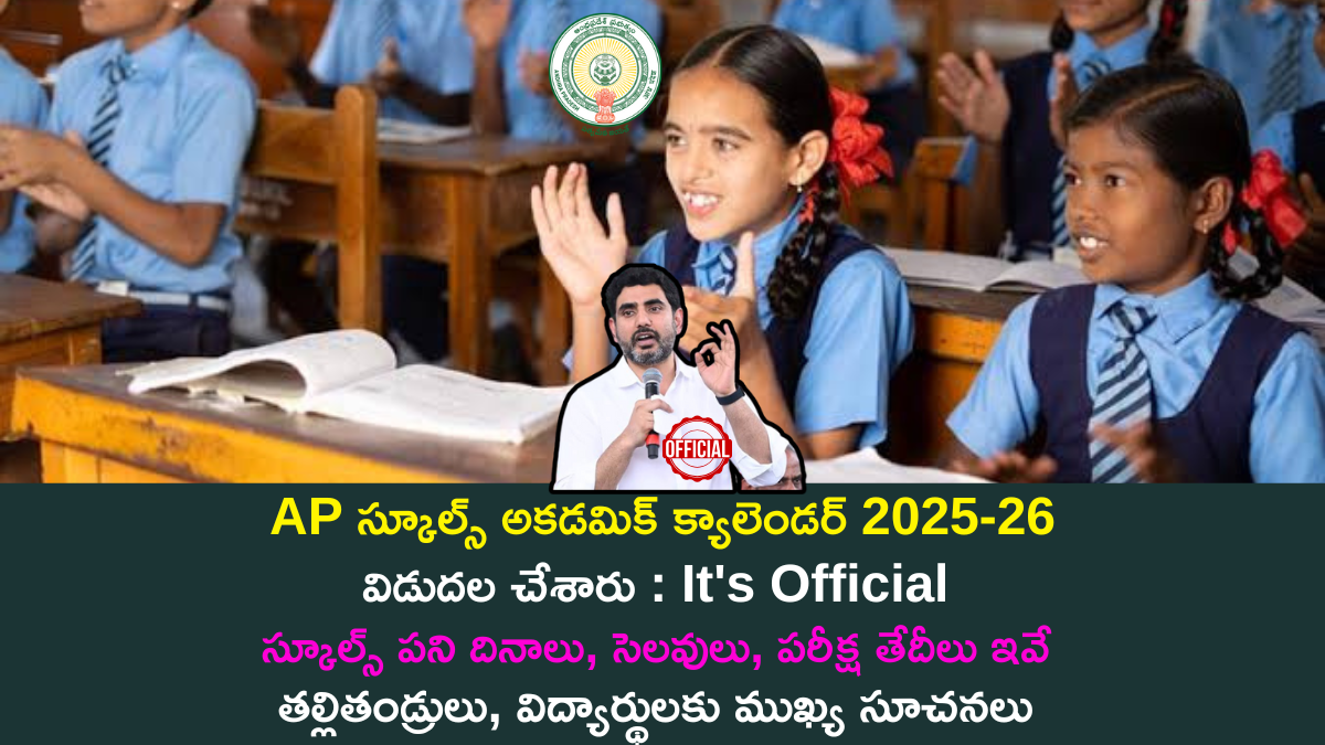 ఏపీ స్కూల్స్ 2025-26 విద్యా సంవత్సరానికి అకడమిక్ క్యాలెండర్ విడుదల : సెలవులు, పరీక్షలు, పని దినాల వివరాలు