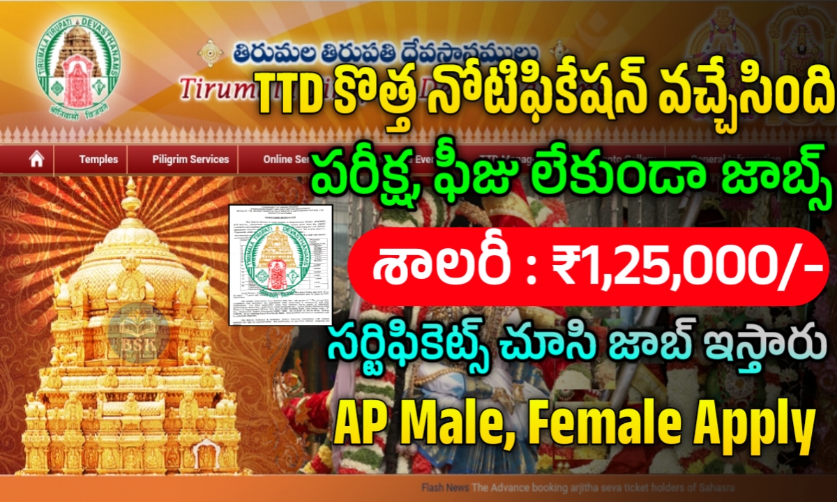 TTD సంస్థలో 10+2 అర్హతతో పరీక్ష లేకుండా ఉద్యోగాలు | TTD SVMC Notification 2024| Freejobsintelugu